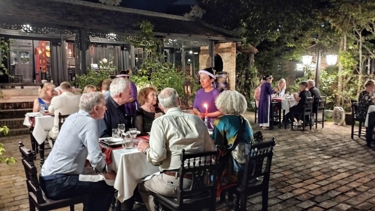 End the day with a truly special dinner at Tha Om. At the home of Pham Ba Vinh, a descendant of the royal family, listen to captivating stories of Vietnam’s imperial past in an atmospheric replica of a 19th-century Hue residence. Savor a sumptuous dinner in the beautiful gardens as the sun sets over the lotus ponds.