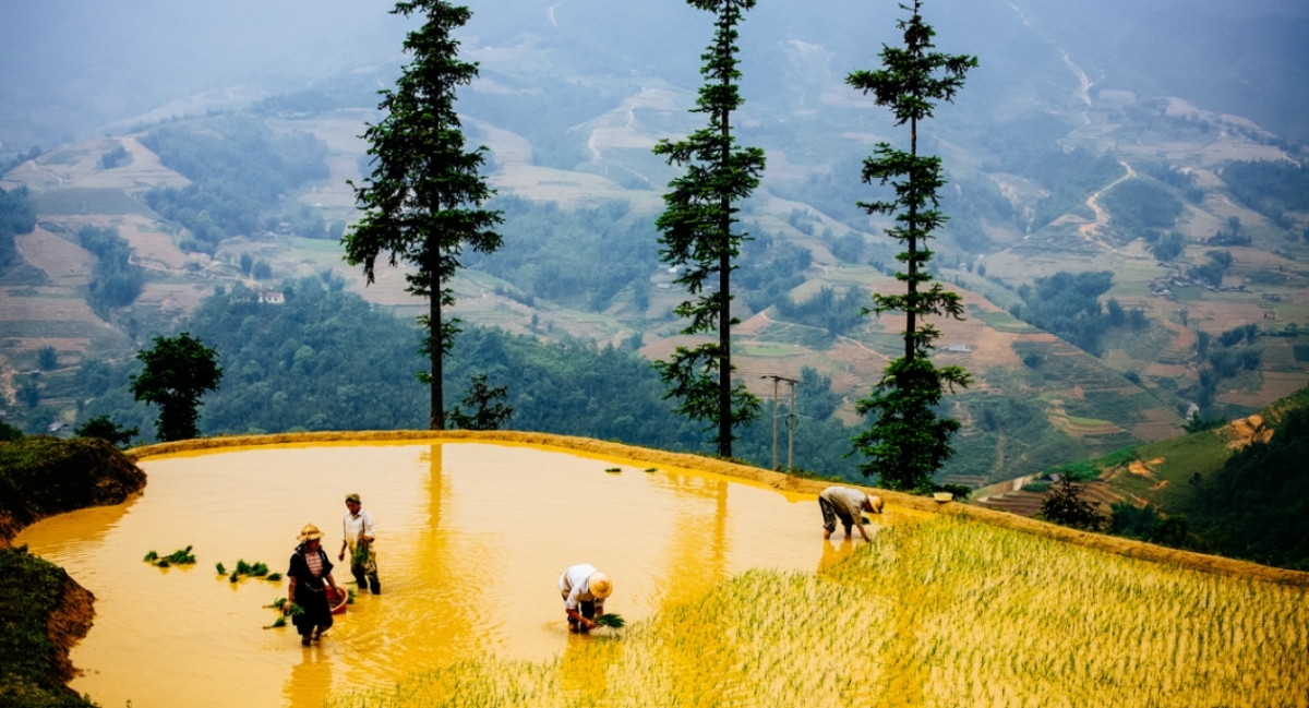 On the way passing lush and green forest, tea farms and possess the most impressive terraced rice fields in Vietnam. The road winds its way on high mountain sides and offers beautiful landscapes. Arrive Hoang Su Phi in noon for checking in. Be ready for lunch with ethnic food at the lodge